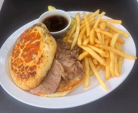 A house favorite! Sautéed onions and cheddar cheese on grilled marble rye.