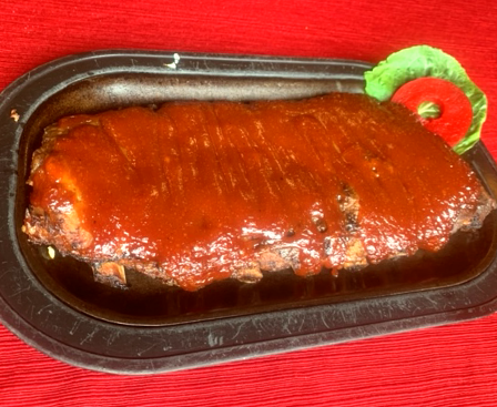 ¼ chicken and half rack ribs.